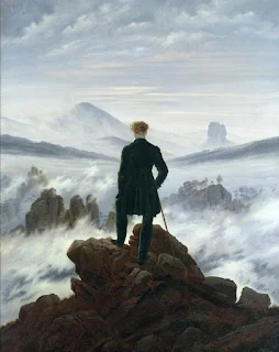 Lienzo: Caminante sobre el mar de niebla. Caspar David Friedrich. |